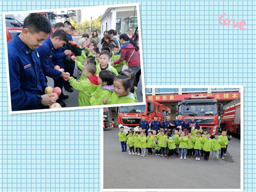 户外场地上,消防员叔叔给大家讲解了许多消防车上的小秘密,例如:高压水枪、防毒面罩、氧气瓶、急救箱等等,孩子们还亲自爬上消防车过把瘾,坐在消防车上,感觉棒极了!消防员叔叔还为小朋友进行了滑绳自救、攀登钩梯等技能表演,高超的技艺博得小朋友们热烈的掌声。临走之前,孩子们还为消防员叔叔们送上了平安果,祝愿他们每次出险都能平安归来!