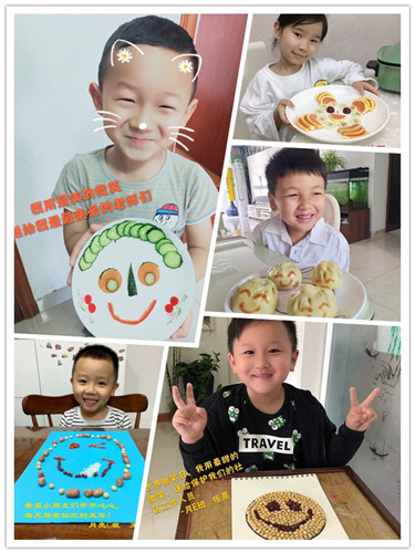 中班的娃娃用食材创意制作微笑表情,如:豆子微笑拼盘,水果笑脸餐等等,孩子们想把美好的祝愿送给自己身边的亲人、同伴还有努力抗疫的人们。