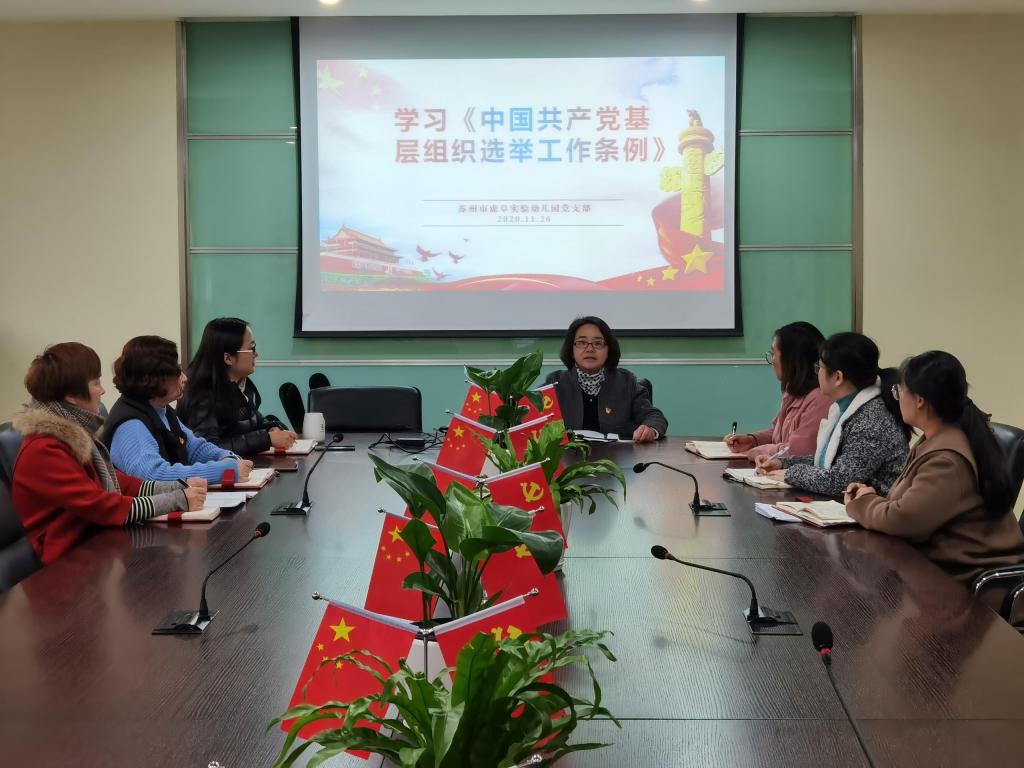 12月1日,苏州市虎阜实验幼儿园党支部组织全体党员认真学习《条例》,通过学习,广大党员充分认识《条例》制定实施的重要意义,对新时代基层党组织选举工作的基本遵循有了全面了解。活动中,支部书记就《条例》的全文进行了逐条解读,对总则、代表的产生、委员会的产生、选举的实施、呈报审批、纪律和监督等章节进行了深入的学习和理解。凌书记提出,要增强“四个意识”、坚定“四个自信”、做到“两个维护”,以高度的责任感和使命感,推动《条例》各项规定要求落到实处,为建设“强富美高”新江苏、开启现代化建 设新征程提供坚强组织保证。