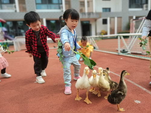 活动中,教师和孩子一起收集了厨余垃圾,将平时大家择菜时剩下的菜叶,去喂养小鸭子、小鹅,孩子们不仅体验到了活动乐趣,也了解了垃圾也可以再利用的小知识。家园配合,虎阜实幼的家长们在师生的号召下也一同参与到垃圾分类的活动中,和孩子一起利用饮料瓶、洗衣液瓶子等废旧材料制作了环保花盆,在他们的共同努力下,变废为宝,变成别出心裁的花盆;他们还一起绘画了垃圾分类绘本,这一件件漂亮、精致的环保花盆和植物,一本本有创意的绘本,不仅融入了绿色环保、健康、文明、节约的生活理念,还提高了幼儿的动手操作能力、创造能力以及表现能力,进一步增进了亲子关系。孩子们还将自己表演的有关垃圾分类的儿歌视频通过幼儿园的微信公众号,向大家进行传播,希望大家能继续坚持垃圾分类的好习惯。