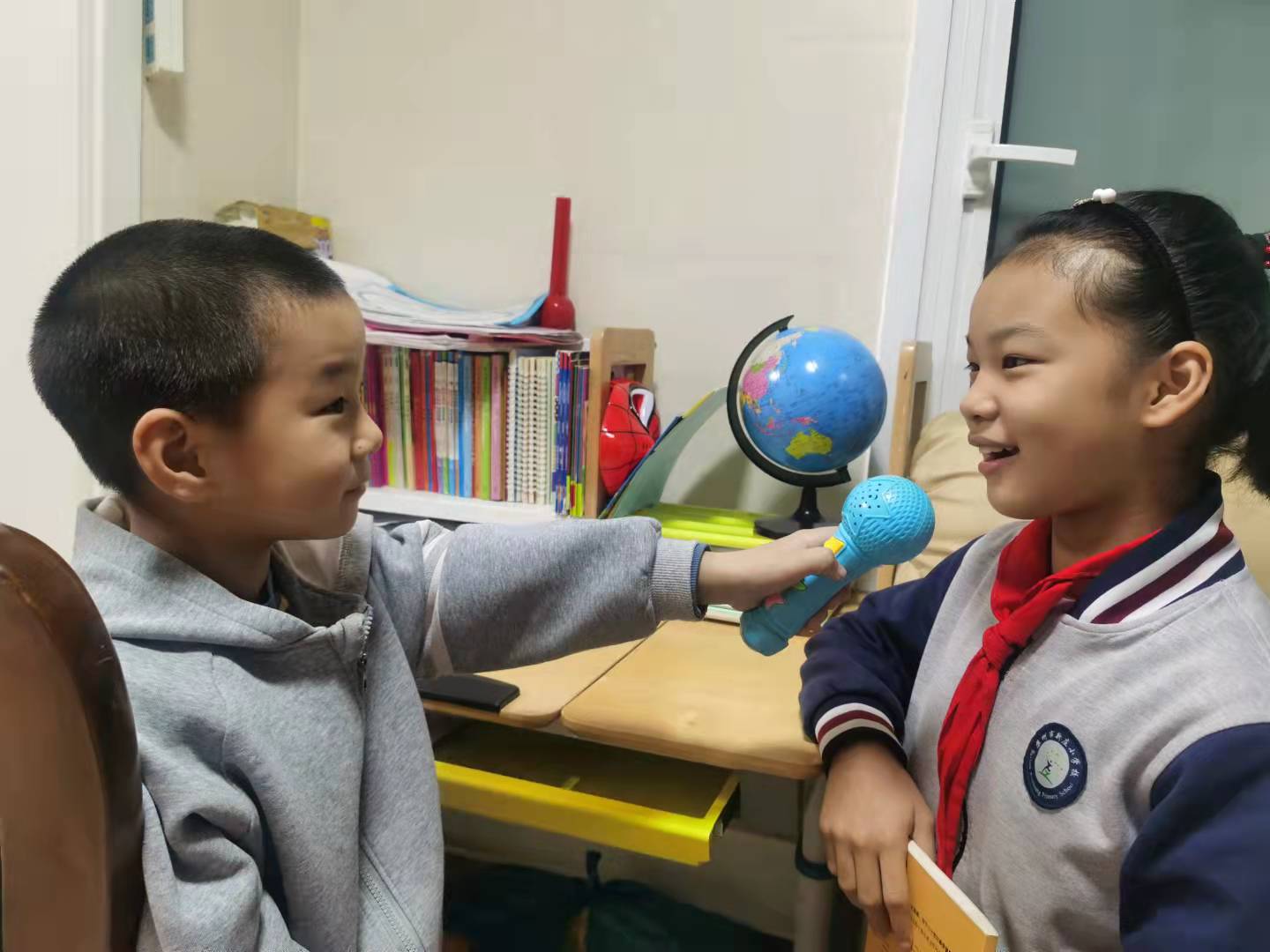 小记者们通过观看新闻联播等方式直观的了解了记者工作的内容,通过绘画、手工的方式制作了小记者证。随后孩子们拿上自制的摄像机和小话筒去校园里采访了小中班的弟弟妹妹,了解了萌宝们的快乐趣事;采访了足球教练,了解了有关足球的游戏内容和规则;有些小记者还在家里采访了上小学的哥哥姐姐,得知了许多有关上小学的事宜。