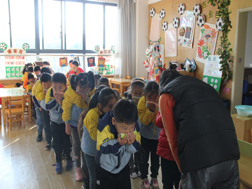 经过前期的一系列学习准备后,虎阜园的师生们进行了消防安全应急逃生演练活动。演练当天,当“火警”信号统一发出后,全园教职工迅速按照消防应急预案要求,奔赴各自责任点,开展疏散工作。孩子们在老师的带领下,用湿毛巾捂住口鼻,有序快速地按照逃生路线撤离到安全地点,随后各班老师迅速清点孩子,并向总指挥报告人数。整个演习活动快速、安全、有序。