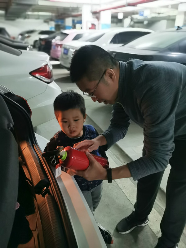 首先开展了消防安全教育教学活动,中班的老师们帮助幼儿了解消防安全小知识,增强消防安全意识,学习消防逃生自救方法。随后,孩子们还一起认识了幼儿园里的消防标志,并且绘画了消防宣传画张贴在走廊、大厅等。孩子代表们变身小小志愿者,向学校周围的居民发放宣传单,让大家一起掌握必备消防常识。家园携手,在爸爸妈妈的引导下,孩子们通过观察、思考、比较知道并熟悉了家中的最佳逃生路线,并在家模拟了在火灾发生时如何逃生。了解了家中的逃生路线后,爸爸妈妈还给孩子们介绍了灭火器,了解了灭火器的使用方法:“一提”指的是握住灭火器提把手迅速赶到火灾现场;“二拔”指的是拔掉灭火器提把上的保险销;“三压”指的是距火点5-6米处,压下把手;“四喷”指的是对准火源根部左右喷射。