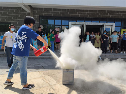 培训中,丁老师向大家介绍了幼儿园烟感设施的作用,演示了消防软管卷盘的使用,并进行消防水压测试,现场还演示了灭火器的正确使用方法。