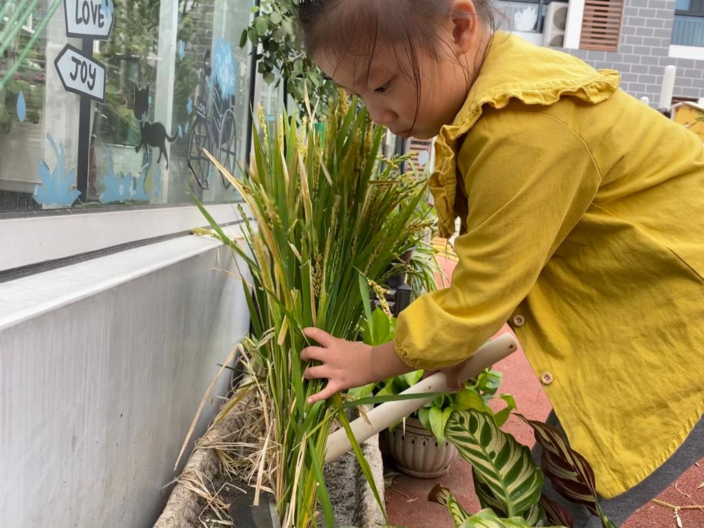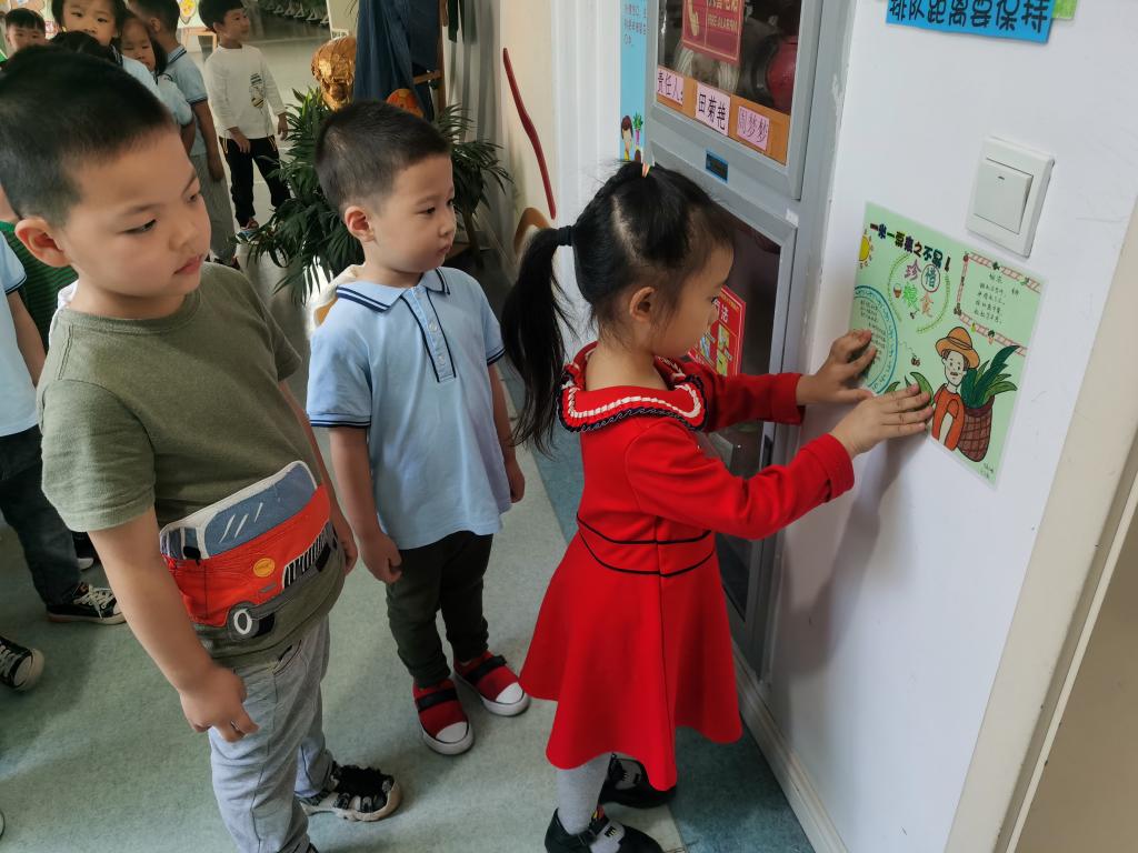 “锄禾日当午,汗滴禾下土。谁知盘中餐,粒粒皆辛苦。”听,幼儿园里传来了孩子们稚气的朗诵声。中班年级特别邀请了家委会的家长走进课堂,向孩子们介绍了“世界粮食日”,通过《悯农》这首古诗让幼儿感受农民伯伯的辛苦,知道我们吃的每一粒粮食都来之不易,它凝聚着农民伯伯的心血和汗水;大家还利用家中带来的各种种子进行了趣味贴画,孩子们用黄豆、绿豆、红豆、豌豆、玉米等种子,在老师的精心指导和帮助下,按照自己的意愿,大显身手,耐心粘贴,便成了一幅幅形象逼真、栩栩如生的种子贴画。有的小朋友用种子粘贴出了可爱的小兔子;有的贴出了神秘的海底世界;有的贴出了帅气的小汽车;还有的贴出了飞舞的蝴蝶……加深孩子们了解各种各样的种子和其成长过程的同时,趣味性地让幼儿明白了节约粮食的重要。金秋十月,正值幼儿园种植园地里师幼一起种植的稻穗成熟,教师们带领小朋友进行了割稻、收稻子等实践体验活动,让孩子们切身体会到了粮食是农民伯伯辛勤劳动的结晶,懂得了“一粥一饭,来之不易”的道理;随后孩子们利用自己的实际行动证明了“养成良好的饮食习惯、爱惜粮食、珍惜劳动成果”的决心:孩子们和家长一起动手设计了爱惜粮食和光盘行动的标志,张贴在食堂、各班的餐点台附近,时时提醒大家要爱惜粮食。他们还将这些自己设计的标志送给小班的弟弟妹妹们,并发放给周边的社区居民们,向大家宣传“爱惜粮食,要从现在做起,从我做起,从大家做起”。各班班级里还专门设了“爱粮监督员”,每天在餐点后检查小伙伴是否光盘,哪一组的碗里、桌面、地面最干净,同时评比“爱惜粮食小公民”,把爱粮、节粮落真正到实处。